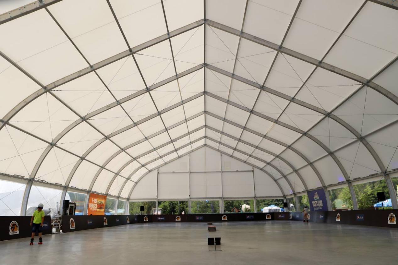高山篷房,搭建快速靈活、堅固可靠,做到3米~50米任意跨度內無支撐障礙,搭建快速靈活、地形適應性強、結構組合多樣,廣泛應用于戶外展覽、商業活動、體育賽事、婚禮宴會以及物流倉儲、防災救災等領域。輔以高山研發的篷房配套模塊如除霾、防寒等設備設施,應用更廣,讓你的戶外活動擁有很多想象。
